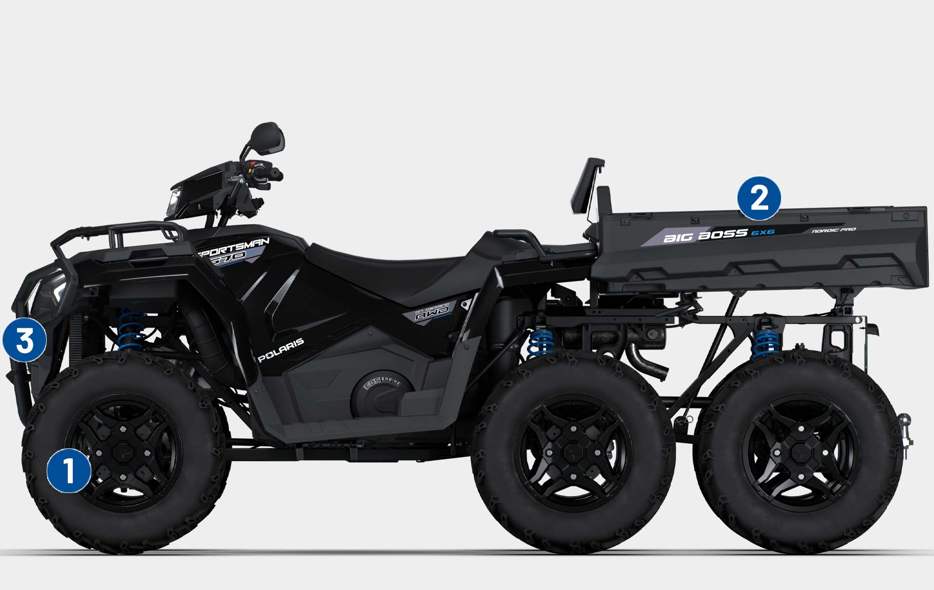 Neste generasjon Sportsman 6X6 570 er utstyrt med dristig ny design, forsterket chassis og forbedrede 6x6-egenskaper for smidigere kjøring og overlegen komfort.