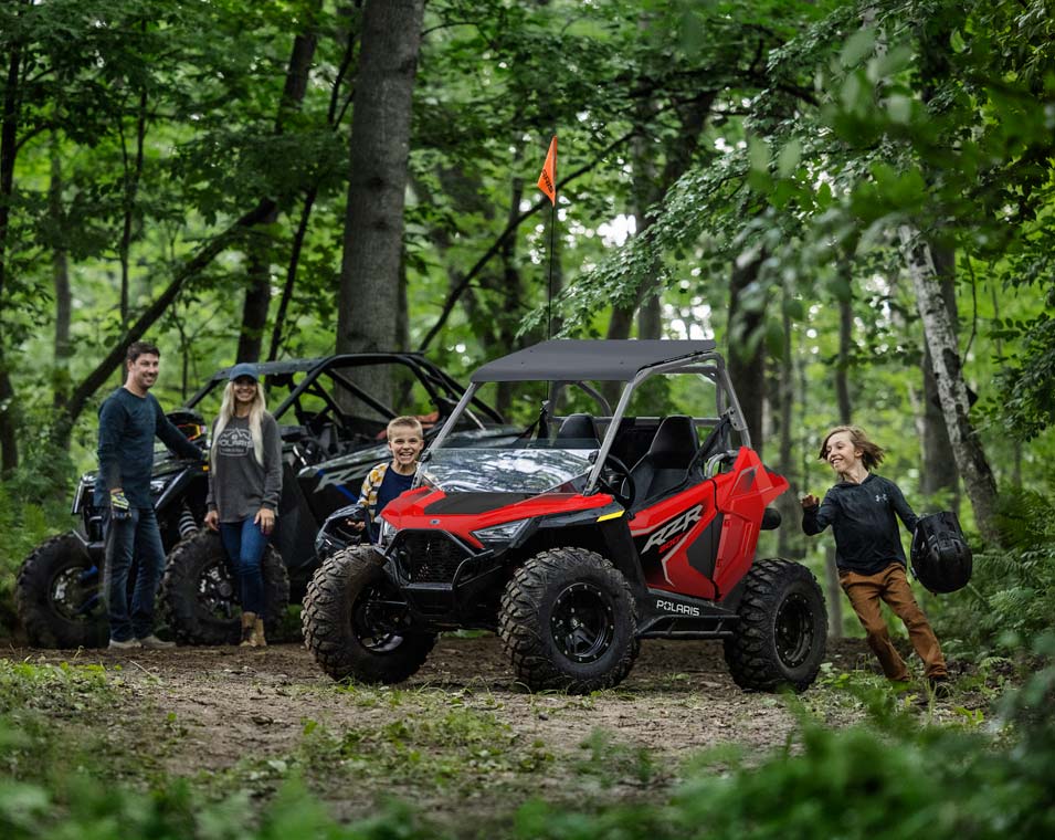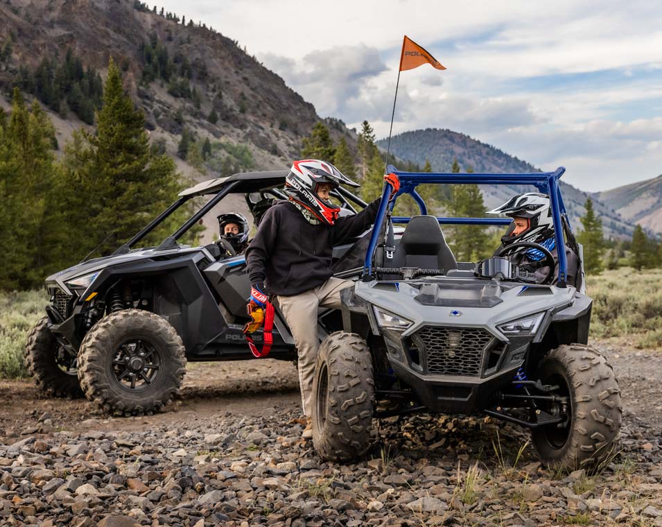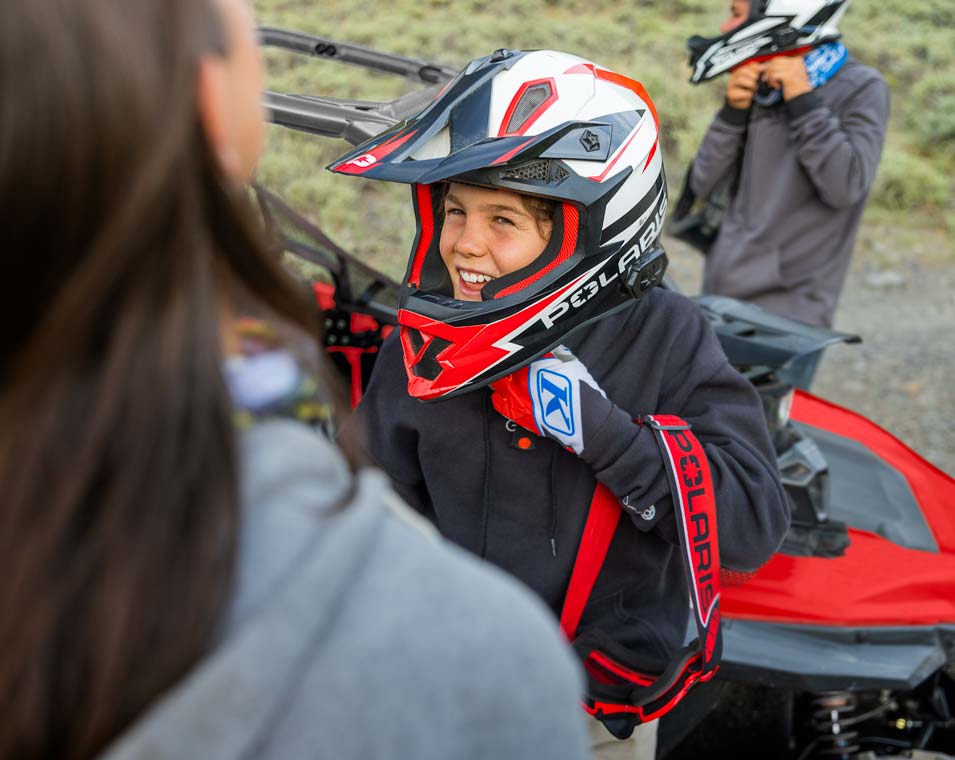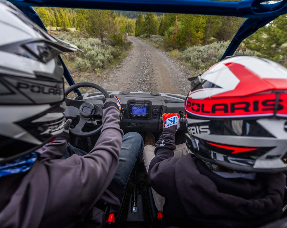 Du kan være trygg på at RZR er utstyrt med bransjeledende sikkerhetsfunksjoner, bl.a. start med PIN-kode, justerbar hastighetsbegrenser, geogjerder, sikkerhetsnett, sikkerhetssett som er eksklusivt i bransjen, og helmet aware-teknologi.